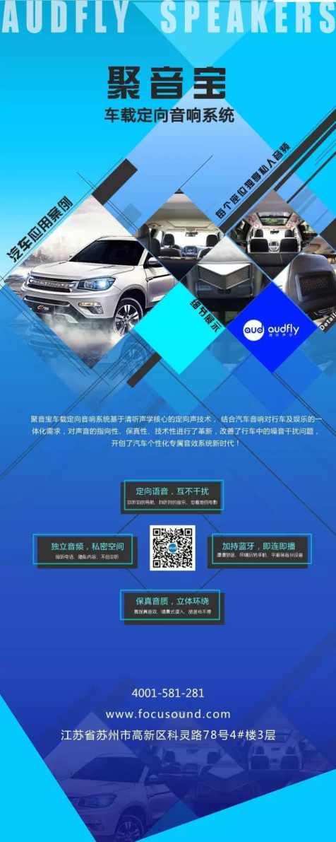 聚音寶車載定向音響基于清聽聲學核心定向聲技術,使車內每個座位擁有獨立的音頻系統,且各音頻互不干擾,形成相對隱私的個人空間。打破了傳統車音響在車輛行駛過程中干擾司機導航、接聽電話的弊端;乘客與司機的音頻系統分離,更是讓車上的每一個人都能沉浸在自己喜歡的音樂中,緩解出行的疲勞與無聊。更多實現原理及體驗,您可在展會現場一一觸及,期待與您相會。